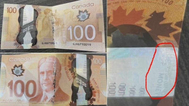 “If something seems off, trust that instinct,” the release said. “Genuine Canadian bills have crisp metallic portraits, don’t peel, and their serial numbers are properly spaced and consistent.”