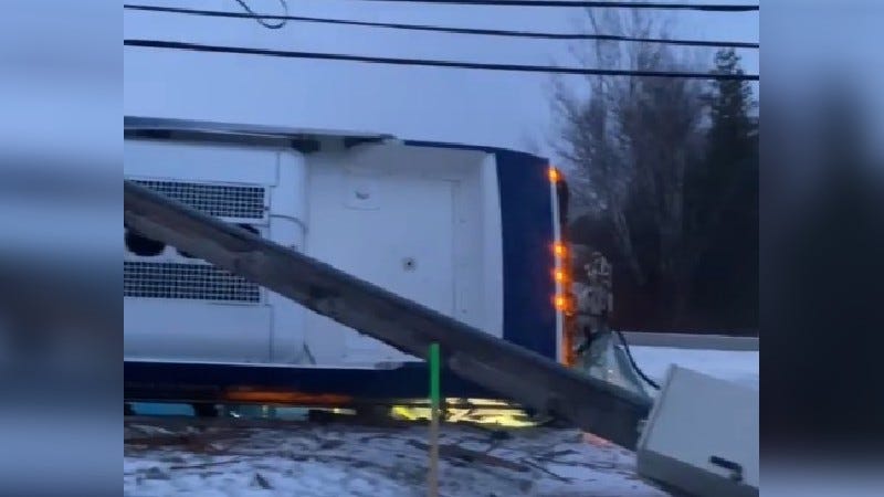 A video circulating on social media showed the city bus on its side, with downed power poles and lines around it.