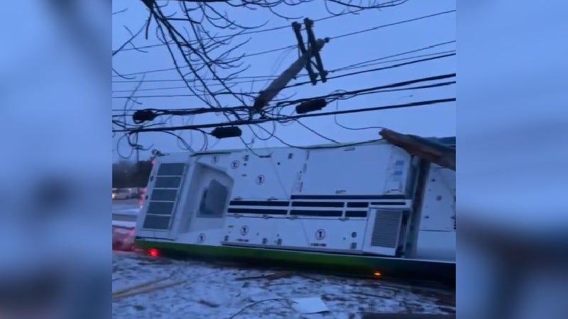 Wow, thank goodness I wasn't on there. If the bus driver called it in that it was too icy, they should have had the trucks with the sand on it so that the other bus could be OK to use. But if the weather is going to happen again with warm temps and then freezing rain then rain, then busses should be off until the roads get better. If people take busses and you know it's going to be like this please don't go out. I am happy that no one was killed. Praying for the bus driver and the passengers to heal fast.